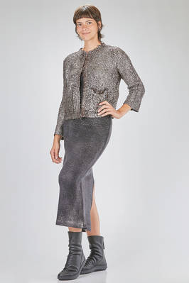 hip-lenght cardigan, soft, in over-dyed laminated cashmere and silk knit