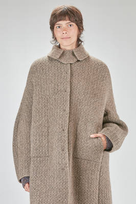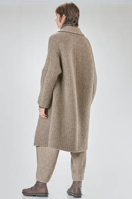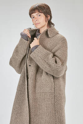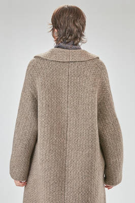 under the knee coat, wide, in double reversible wool, polyester, yak, mohair and elastan knit