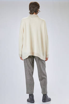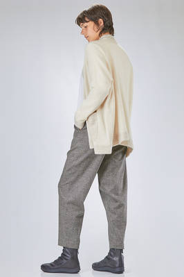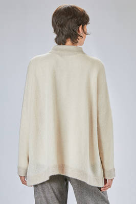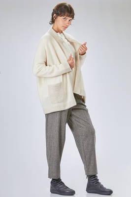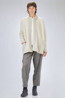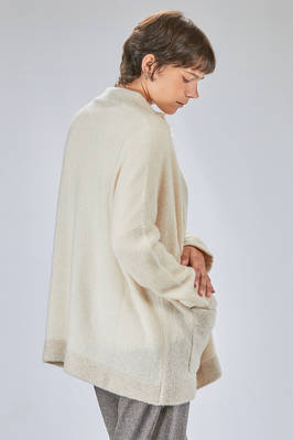 long and straight cardigan in soft hand-knitted cashmere and silk yarn with profiles and pockets in a slightly different touch of color, band collar, two pockets applied at the bottom, closure with magnetic button. The model is 178 cm. tall and she is wearing a size I