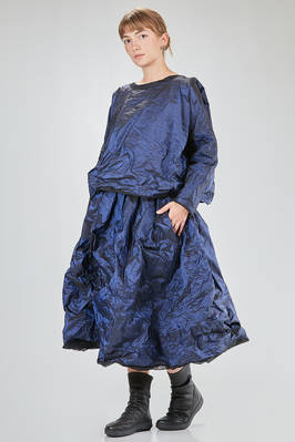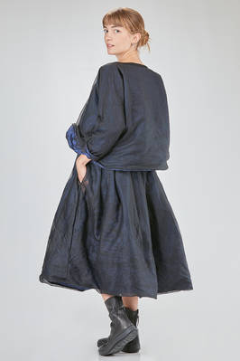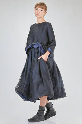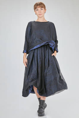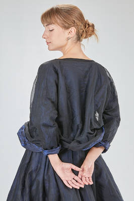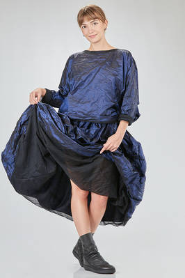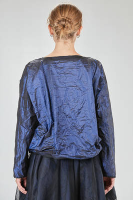 hip-length top, wide, doubled tone on tone: one side in washed silk taffetas and one side in washed silk tulle, round-neck, long sleeves, flared bottom, reversible. The model is 168 cm. tall and she is wearing a size I