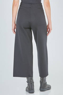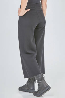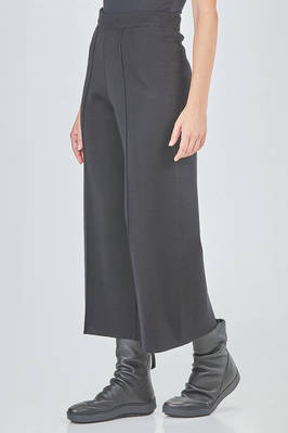 wide trousers in woven look merino wool knit, elastic waistband, one chest applied on the back, central and vertical stitch on the front. The model is 168 cm. tall and she is wearing a size I