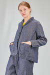 hip-lenght jacket, wide, in iridescent washed linen denim, one chest with rever, closure with buttons, pockets applied at the bottom, rear central slit