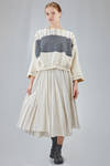 short and wide sweater in cotton fleece with printed motif that gives 'glittery paint drop' effect on the front, boat neckline with knitted ribs with irregular profiles, wide dropped ¾ sleeves with knitted ribs at the end, wide bottom slightly curled with knitted ribbed band