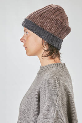 berretto a costine in maglia morbidissima di lana merino extrafine e cachemire tinta a mano e tutta sfumata, modellabile a piacere, reversibile