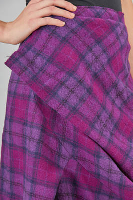 gonna longuette, asciutta e asimmetrica in tartan - 'omaggio' a Vivienne Westwood – di lana vergine bollita, foderata in seta, con pieghe cucite sul davanti, chiusura con zip centrale posteriore, fondo più corto sul retro. Taglie francesi