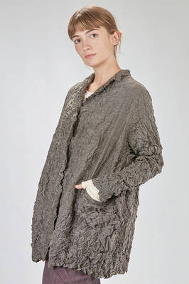 giacca lunga e morbida in froissé stropicciato di poliestere e lana melange