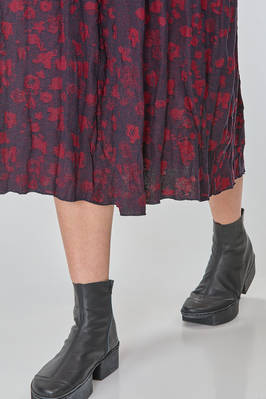 longuette dress, loose and fitted at the waist, made of silk and linen knit with melange floral inlays