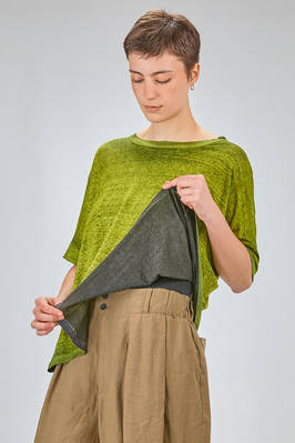 t-shirt al fianco, ampia, in maglia fiammata di lino sovra-tinto