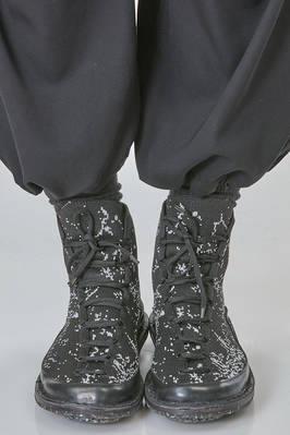 polacchino tipo sneaker in tela stretch da fibre riciclate con stampa ad effetto pixel irregolari in contrasto di colore, chiusura con lacci, soletta interna in sughero removibile, suola arrotondata in gomma riciclata da vecchie Trippen dismessepolacchino tipo sneaker in tela stretch da fibre riciclate con stampa ad effetto pixel irregolari in contrasto di colore, chiusura con lacci, soletta interna in sughero removibile, suola arrotondata in gomma riciclata da vecchie Trippen dismesse