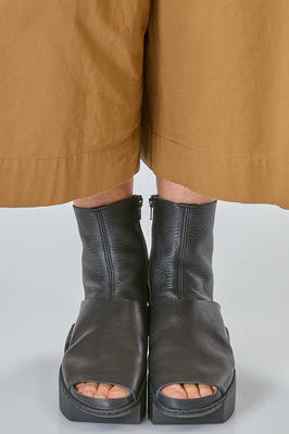 scarpa 'componibile' in pelle di vacchetta, costruita a sabot con punta aperta e inserto removibile tipo 'galosce' con fascetta chiusa con velcro nella parte inferiore e zip laterale dalla parte interna, suola giapponese in gomma a due blocchi